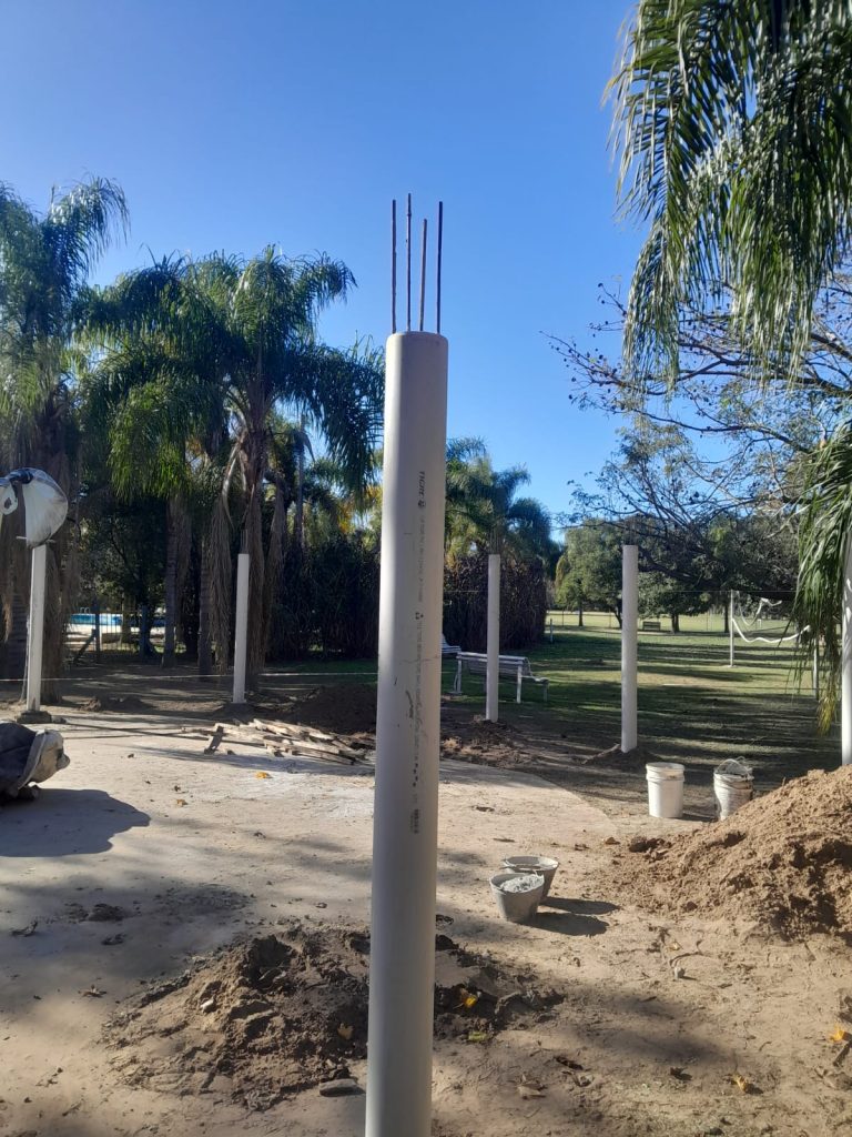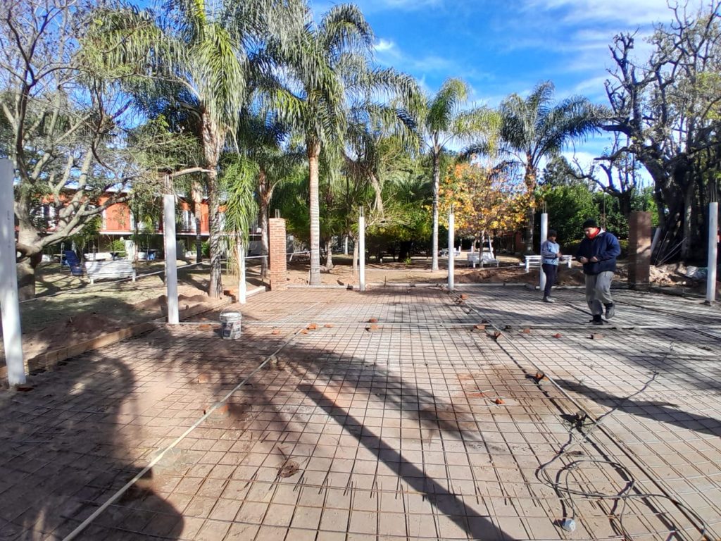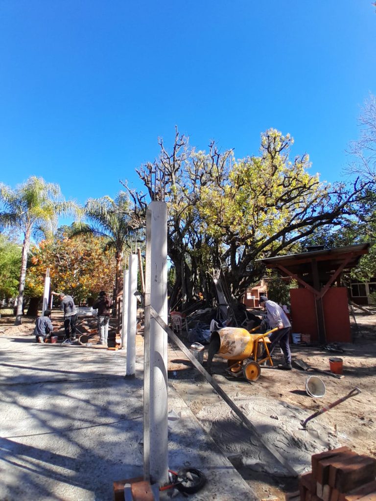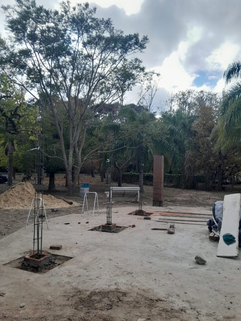 Aquel quincho redondo de paja fue desmantelado y, en su lugar, se está construyendo un salón abierto, más amplio y moderno, que cumpla con las mismas comodidades del quincho que estaba ubicado en el mismo lugar.