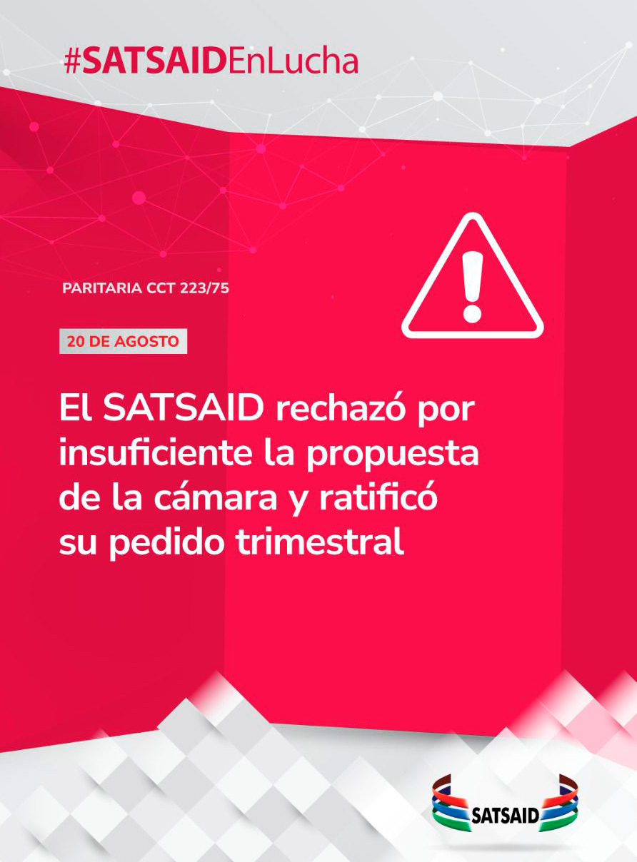 El SATSAID rechazó por insuficiente la propuesta salarial realizada por los representantes de la Asociación TIC, Video y Conectividad (ATVC) e insistió con su pedido trimestral.