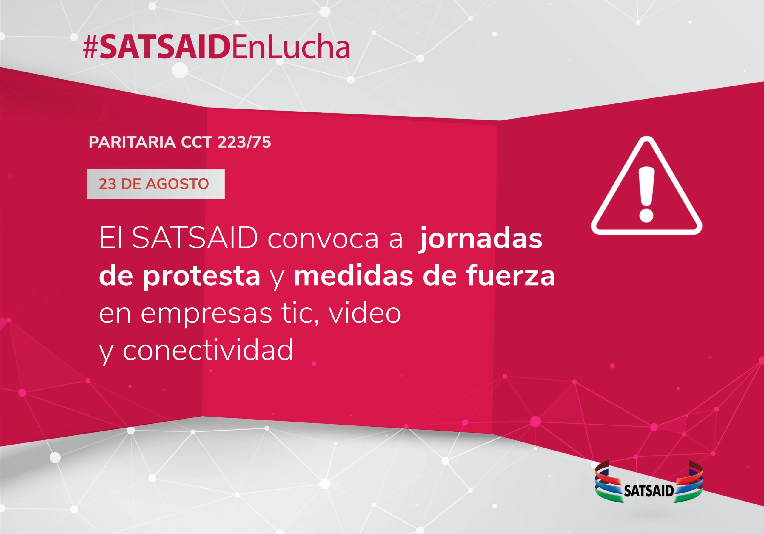 Además, el gremio dispuso realizar los días martes 27, miércoles 28 y jueves 29 de agosto de 2024, JORNADAS DE PROTESTA, ESCLARECIMIENTO Y CONCIENTIZACIÓN para dar a conocer a la población sobre el retraso salarial que tenemos los trabajadores y trabajadoras en las empresas TIC, de Video y conectividad (volantes, pintadas en la vía pública, campaña en redes y medios de difusión).
